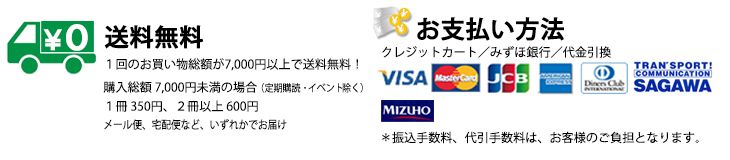 商品の発送は宅配便又はメール便にてお送りいたします。7,000円以上お買い上げいただいた場合(定期購読を除く)、送料は無料とさせていただきます。